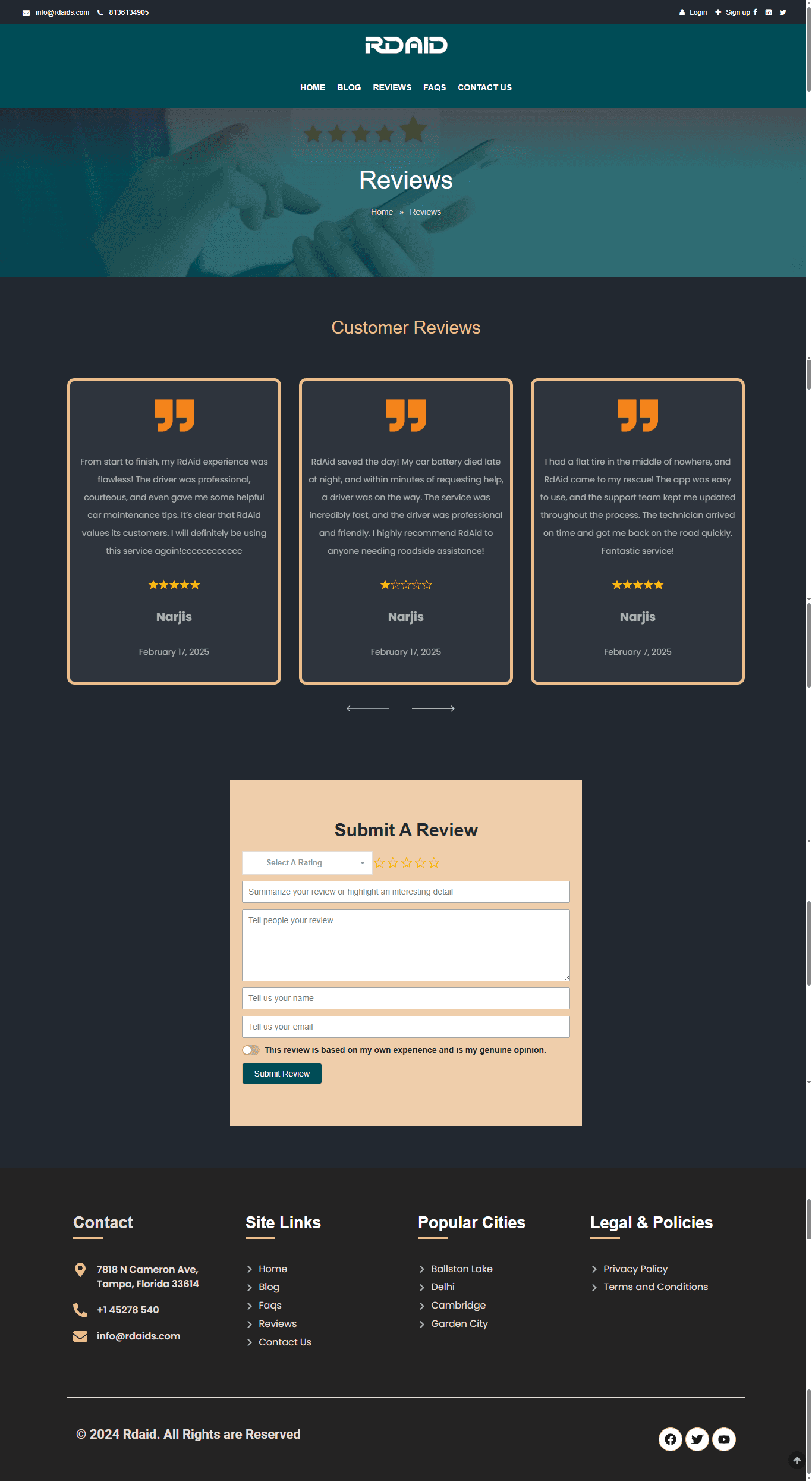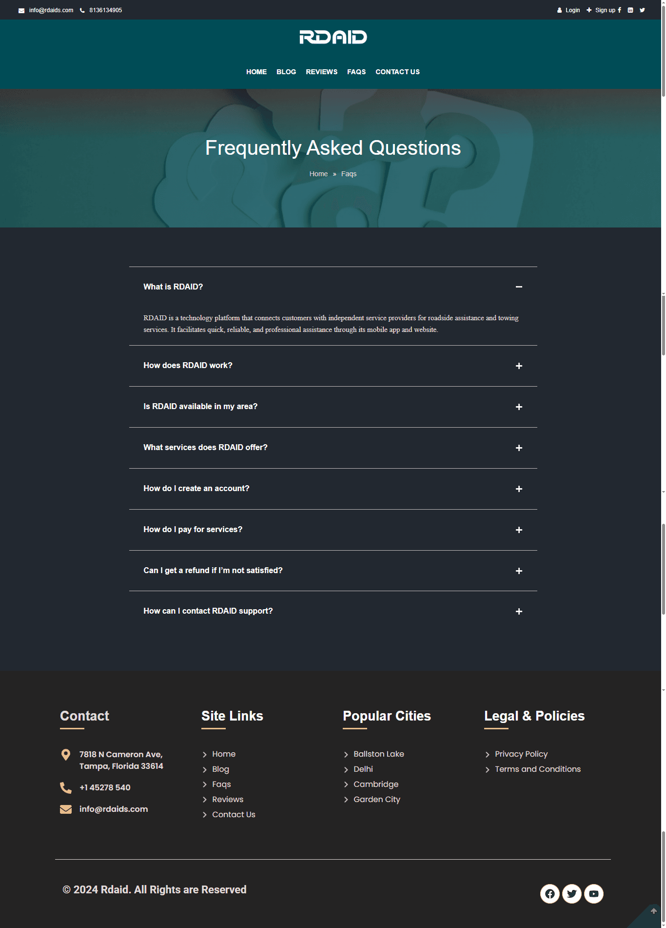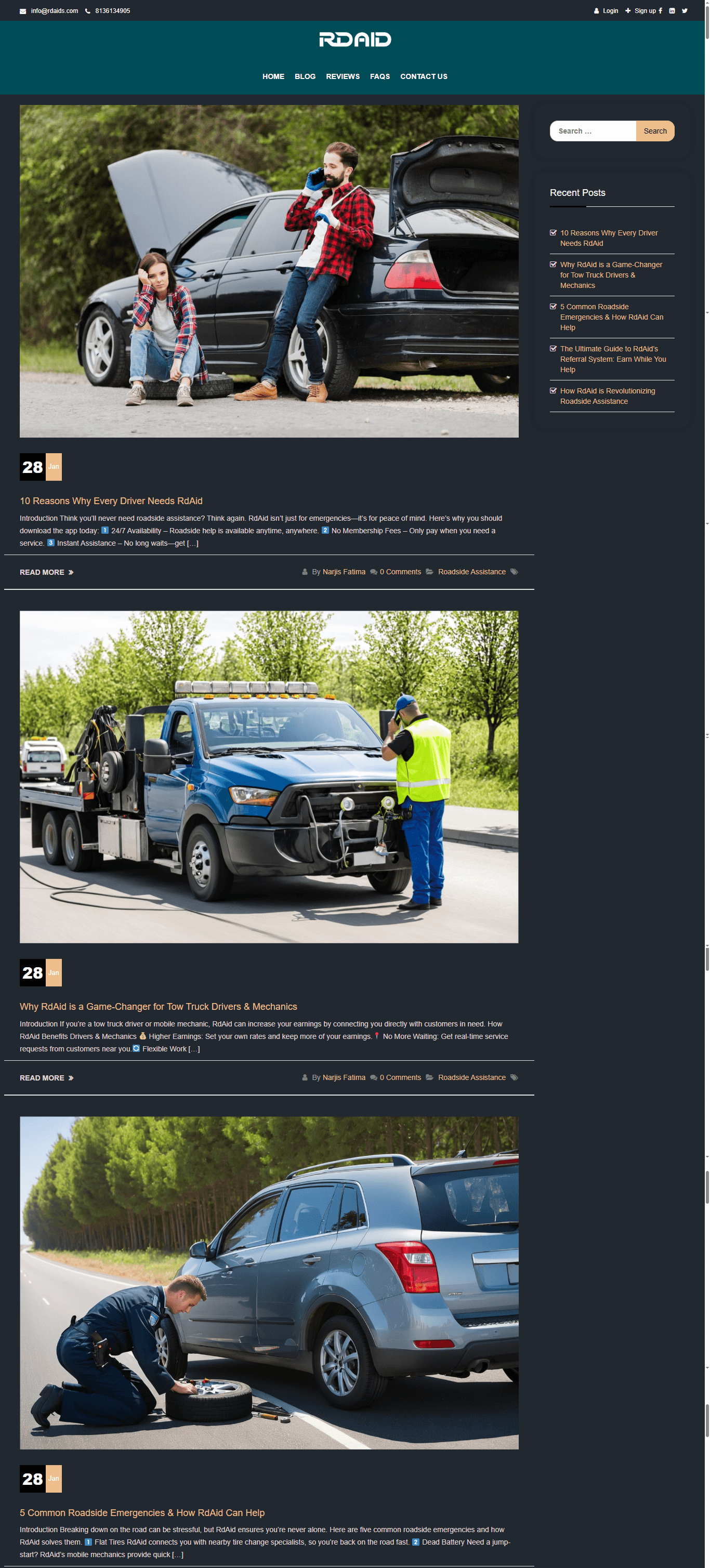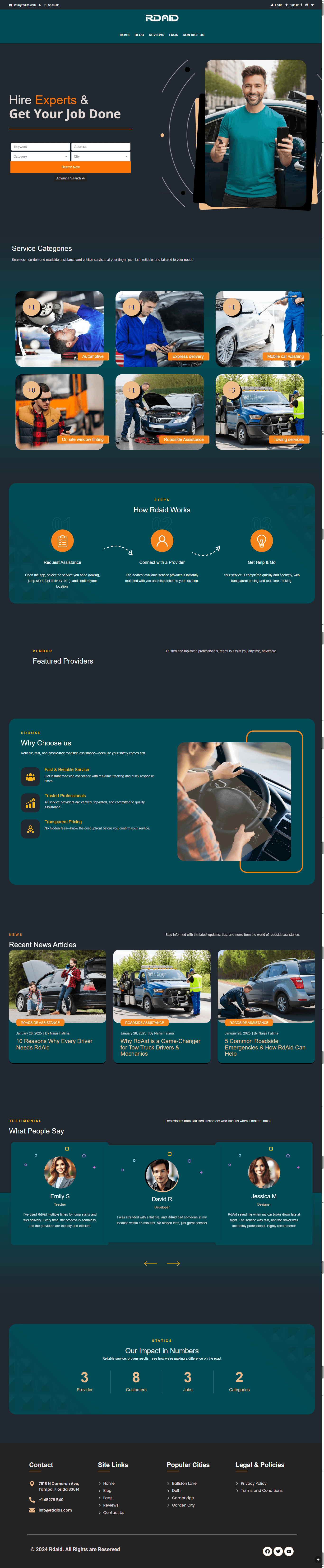 RDAid provides round-the-clock roadside assistance, helping drivers in emergency situations with timely, reliable services. The client approached me with a clear vision: a fast-loading, user-friendly website that would not only showcase their services but also serve as an operational tool for drivers and customers alike.